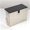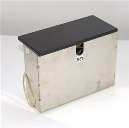 Lampada da tavolo in acciaio cromato e plexiglass opalino con base in legno (h. cm 19,5). Inscritta "Book" sulla superficie esterna dell'acciaio cromato (difetti) -EN A chrome and plexiglass table lamp, inscribed (losses)