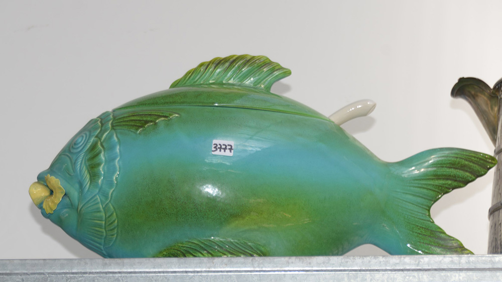 Zuppiera in ceramica a forma di pesce (largh. cm 54)(lievi difetti)
