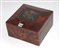 Scatola in radica con coperchio decorato da fregio in rame sbalzato con volto...