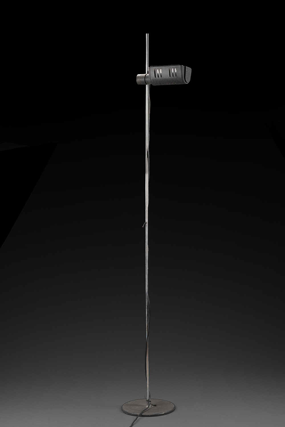 Lampada da terra in metallo verniciato nero e cromato. Italia, anni 80 (cm 198,5) (difetti) -EN A chromed and painted metal floor lamp. Italy 1980's (defects)
