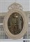 Specchiera di forma ovale in legno laccato con cimasa scolpita e traforata a...
