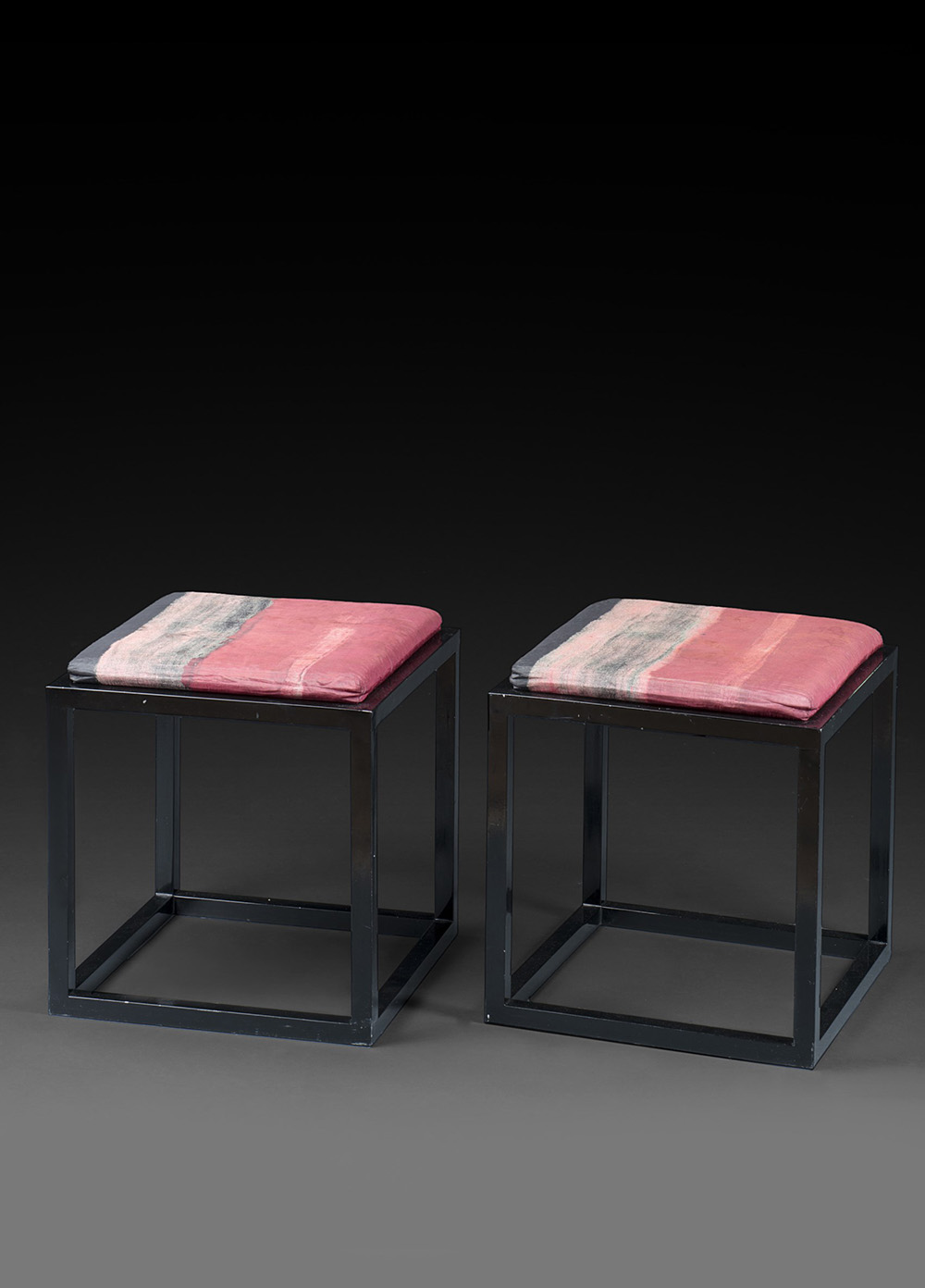 Lot 3848 | Coppia di sgabelli di forma squadrata in metallo laccato nero (cm 40x40x40)...