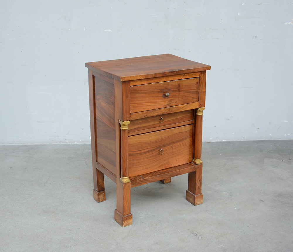 Comodino Impero con montanti a mezza colonna decorate da capitelli dorati (cm...