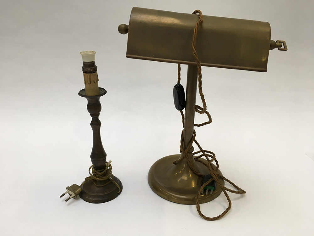 Lotto composto da una lampada diplomatica e un candeliere montato a luce elettrica (difetti)