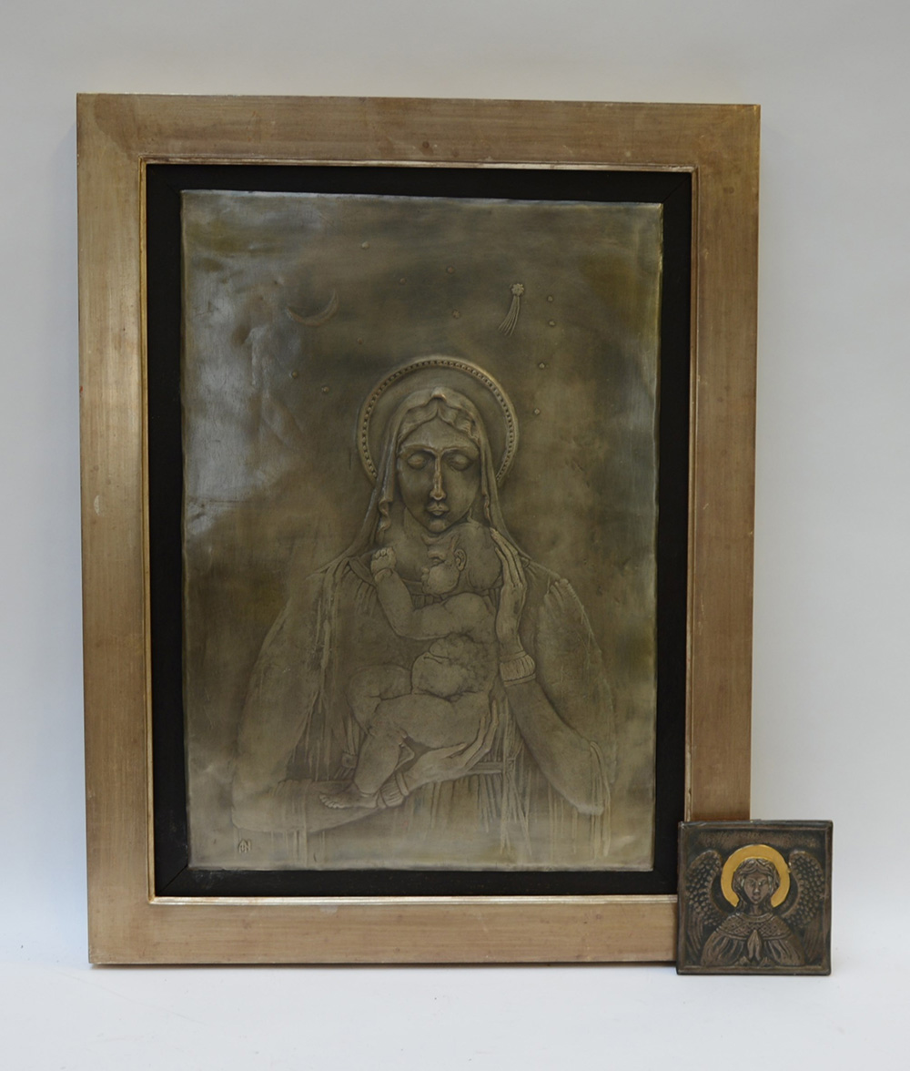 Lotto composto da due composizioni a soggetto religioso su lamina (difetti)