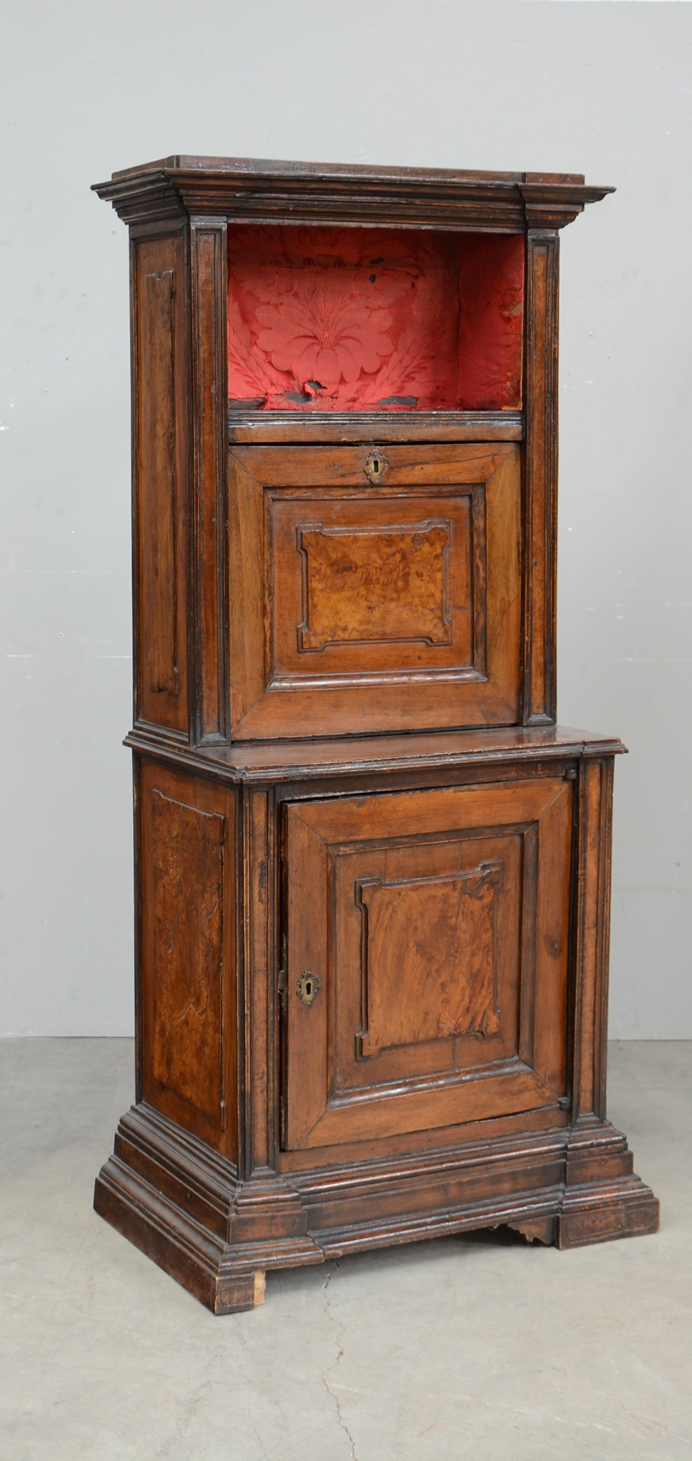Antico credenzino con fronte a due ante e vano a giorno (cm 65x164x44) (difetti e mancanze)