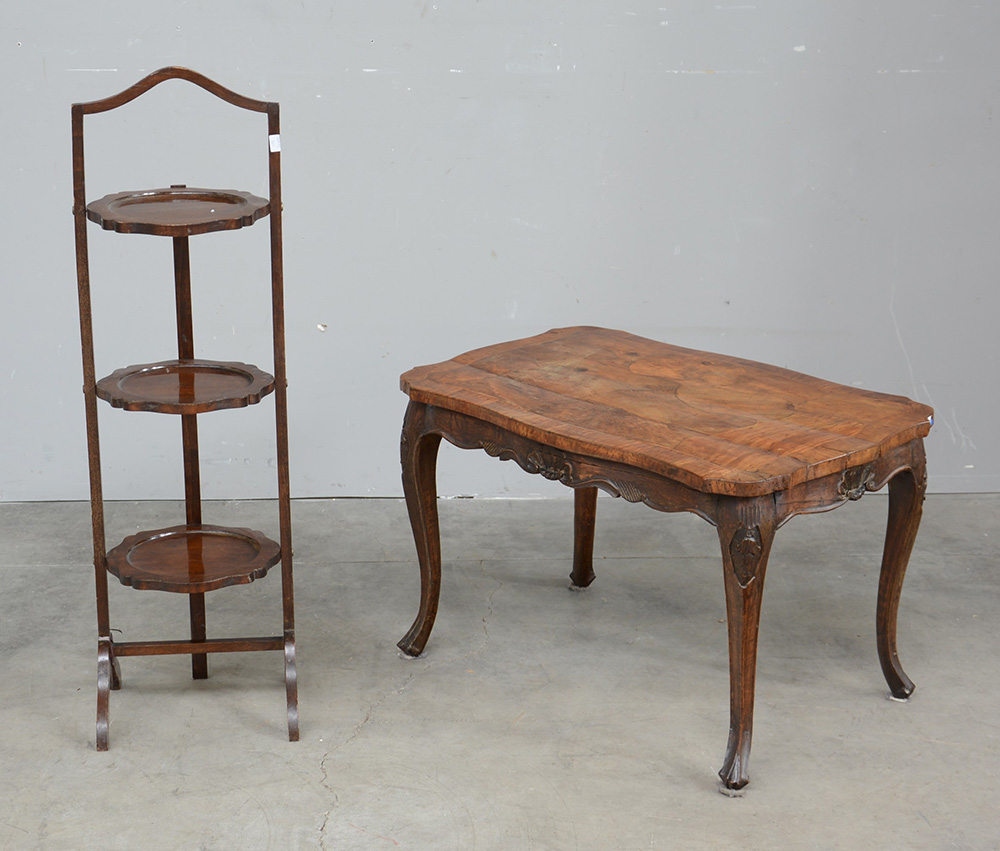 Lotto composto da un servomuto e un tavolino da salotto in radica (difetti)