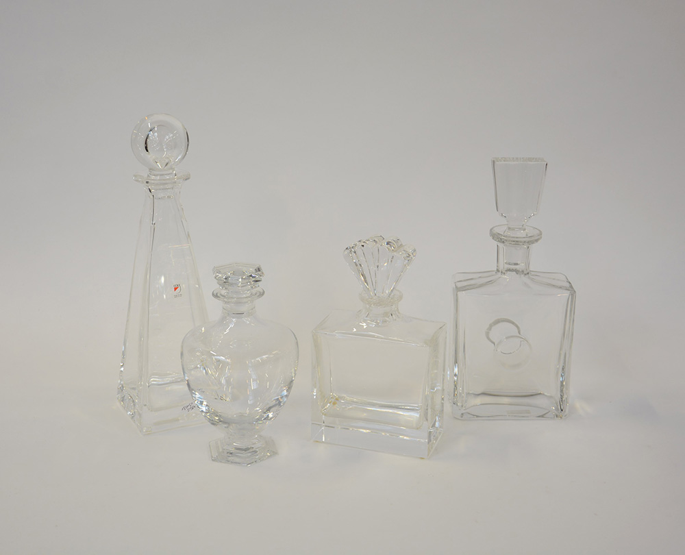 Lotto composto da quattro bottiglie con tappi di misure e forme diverse (difetti)