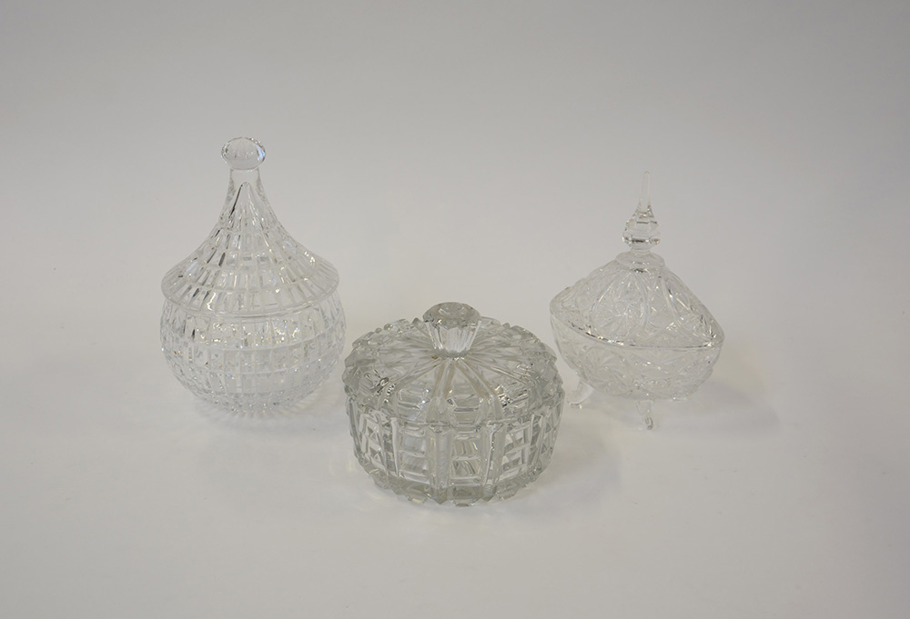 Lotto composto da due scatole con coperchi, in cristallo molato e una in vetro