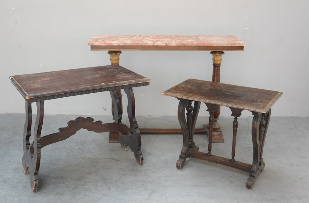 Lotto composto da due tavolini con sostegni a trespolo (difetti)