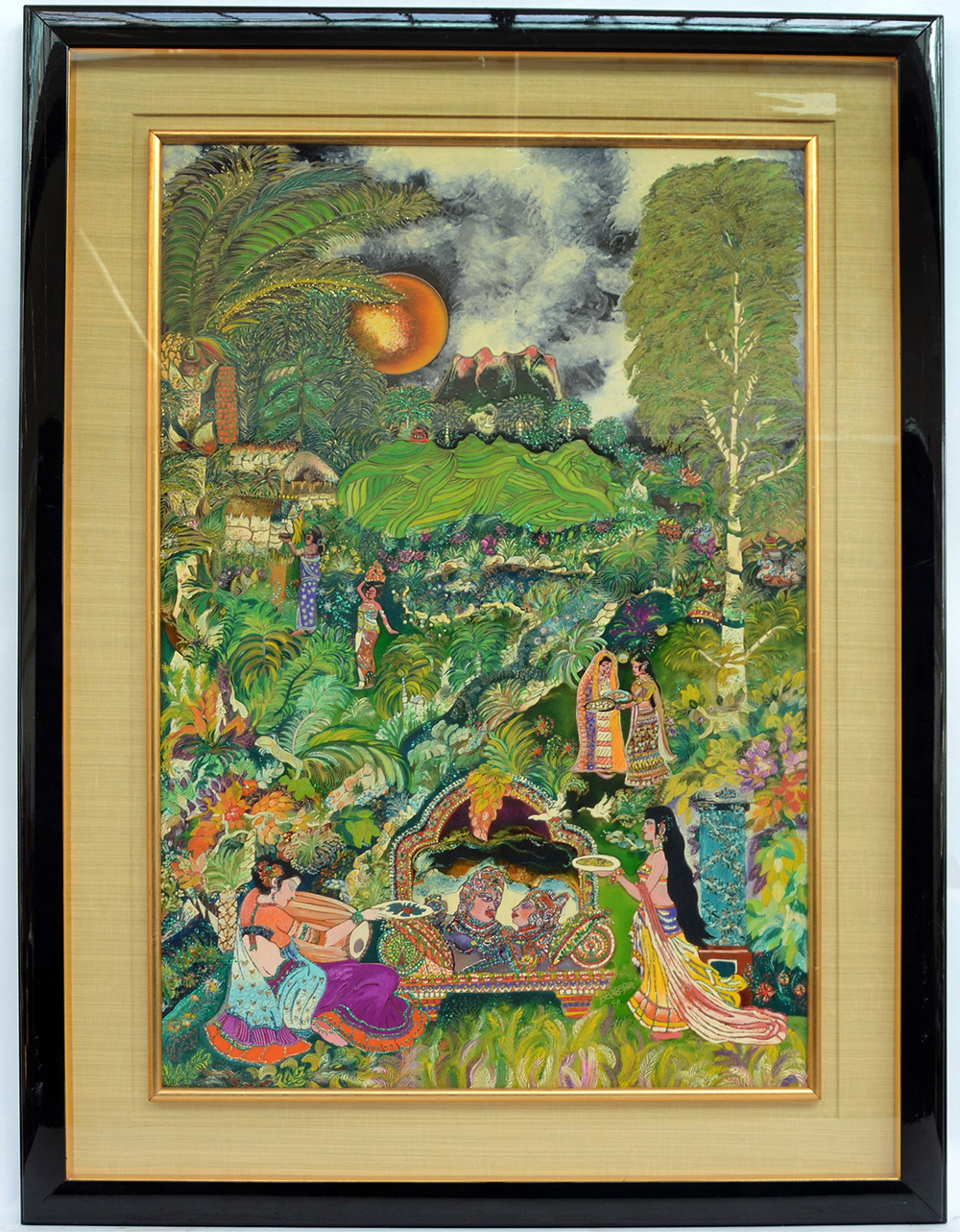 Ignoto "Figure orientali in un paesaggio" tecnica mista su cartone (cm 90x60) in cornice (difetti)