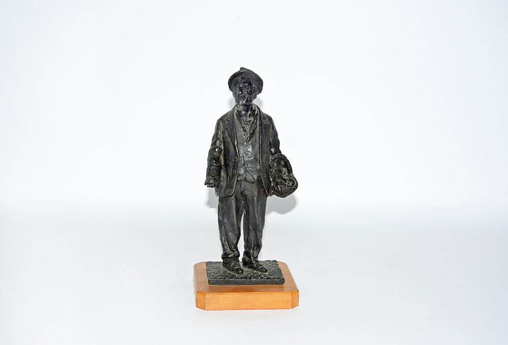 Firma indecifrata "Il venditore ambulante" scultura in bronzo (h cm 27) firmata sulla base a destra, base in legno