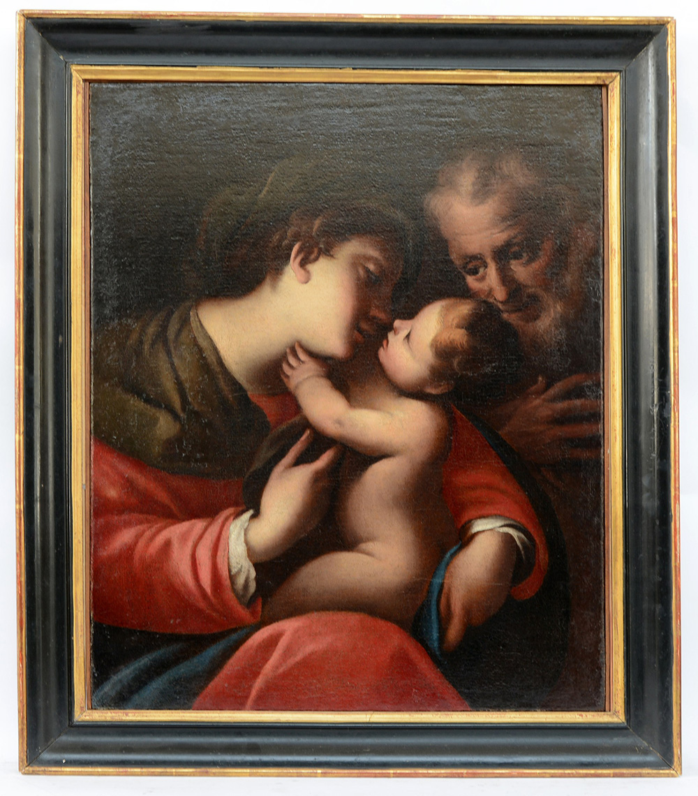 Scuola del sec. XVII "Sacra famiglia" olio su tela (cm 75x58) In cornice (difetti e restauri)
