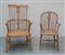 Lotto di una poltrona e una poltroncina in teak stile Windsor (difetti)