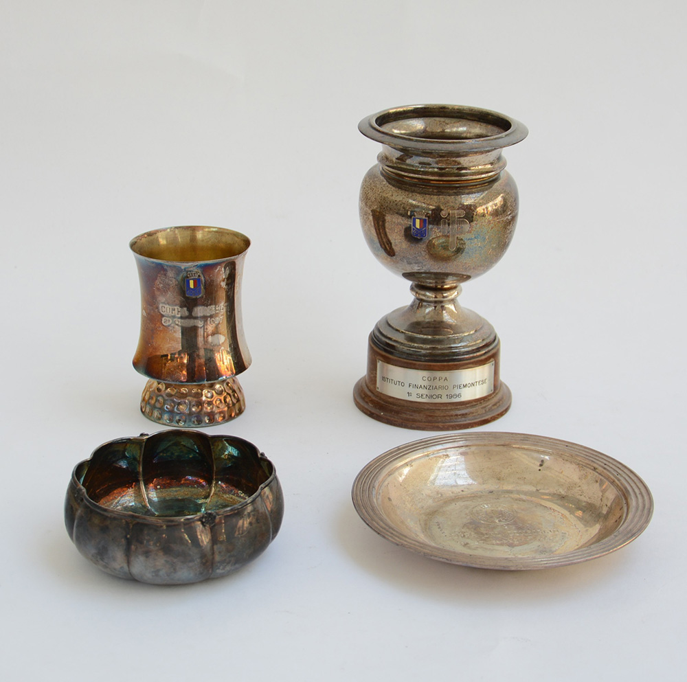 Lotto composto da quattro oggetti diversi in argento(gr lordi 750 ca.) (difetti)