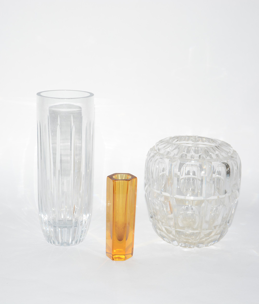 Lotto composto da tre vasi portafiori in vetro di misure diverse (difetti)