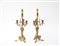 Coppia di candelieri in bronzo a quattro fiamme decorati con fregi in rilievo...