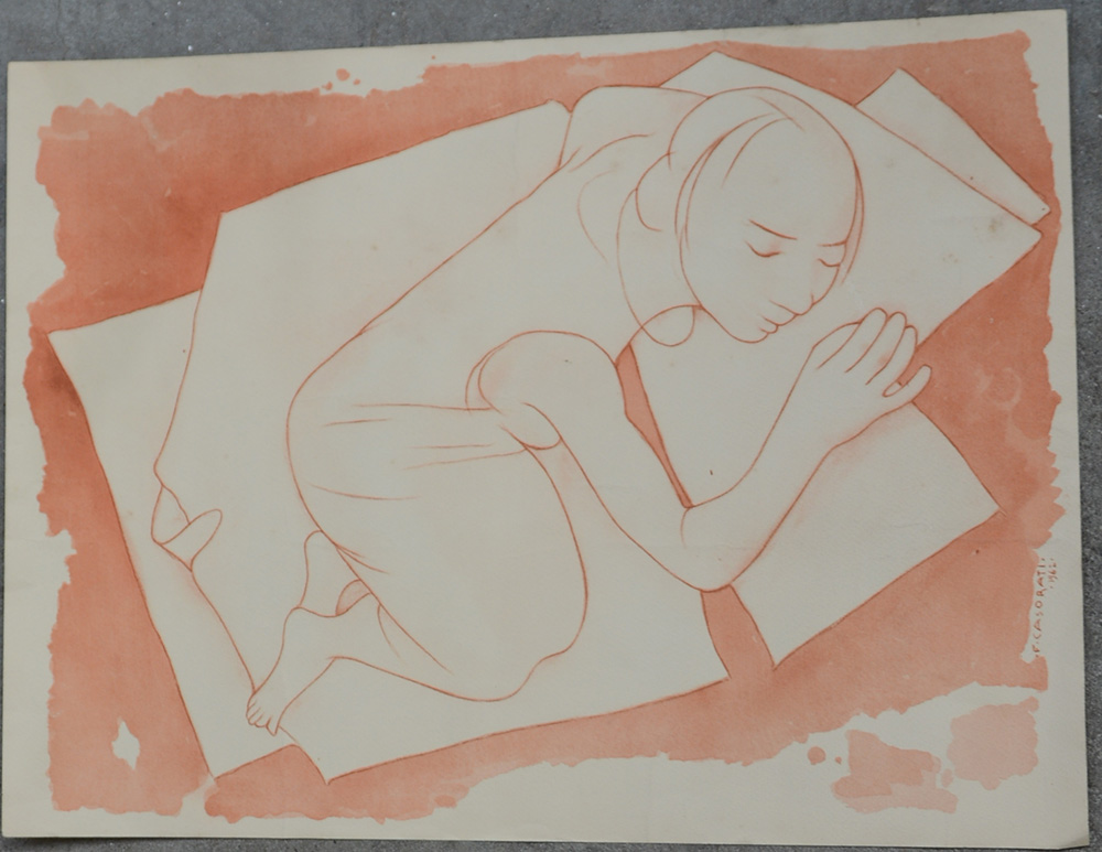 riproduzione di un disegno di Felice Casorati "Figura femminile" 1962 (cm...