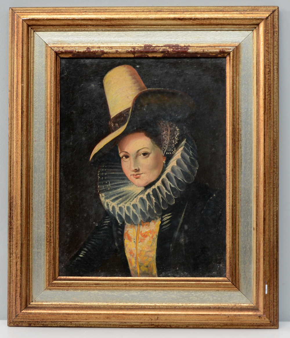 Ignoto "Ritratto di signora con gorgera" olio su tela (cm 40x30) In cornice