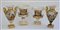 Lotto composto da due coppie di vasi in ceramica decorati a dorature e...