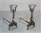 Coppia di antichi alari in ferro battuto sormontati da vasi (h. cm 55) (difetti)