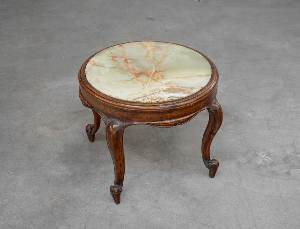 Tavolino da salotto di forma circolare con gambe sagomate e piano in onice (d cm 50 x h cm 41)