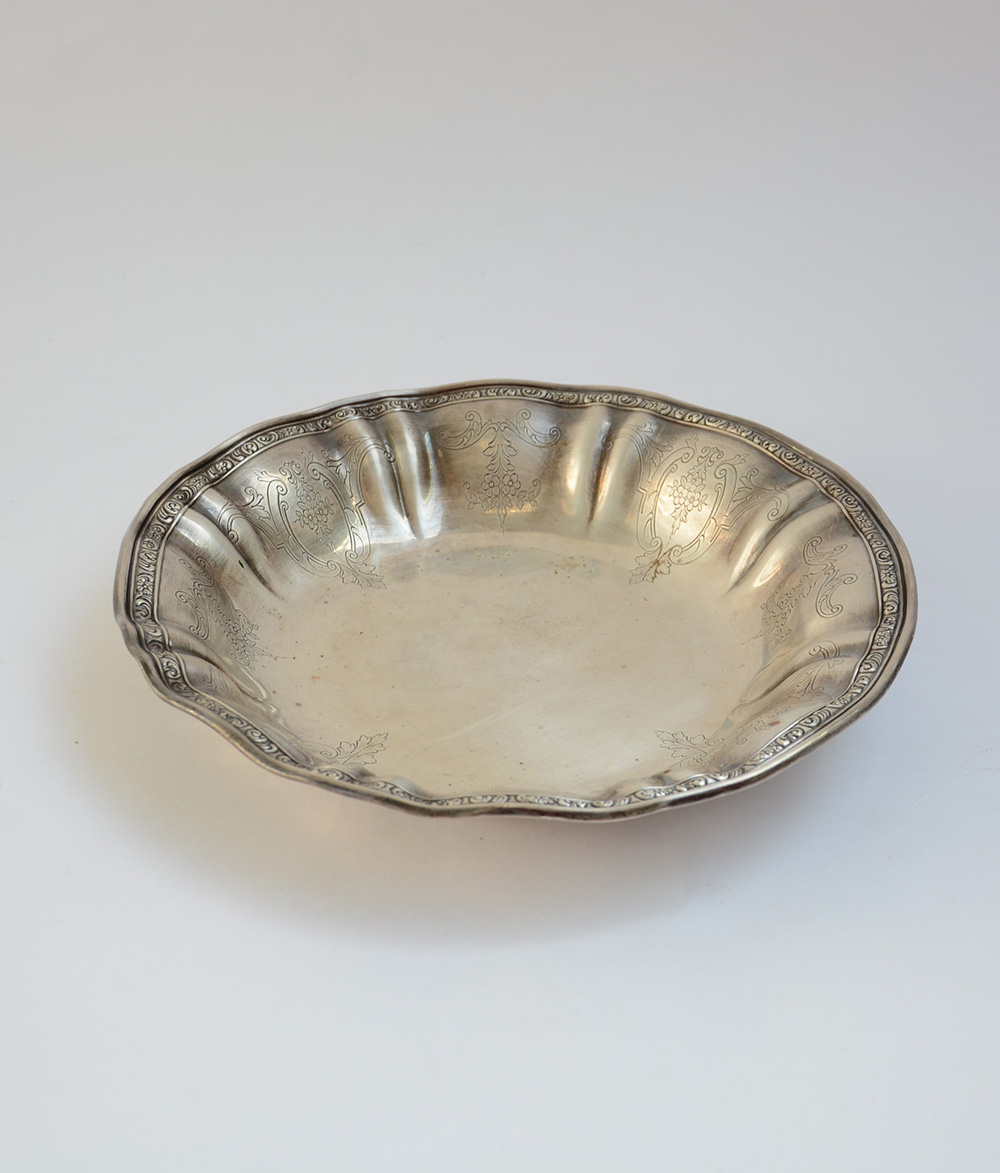 Centrotavola in argento di forma circolare sagomata e decorata con volute...