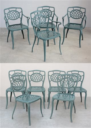 Fornitura da giardino composta da sei sedie e quattro poltrone impilabili, modello Althea Fast, in alluminio estruso pressofuso e verniciato color verde (difetti)