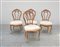 Gruppo di quattro sedie con schienale traforato e intagliato, gambe mosse. Sec. XIX (difetti)