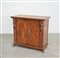 Credenza lastronata in noce a due ante sul fronte. Montanti scolpiti a...