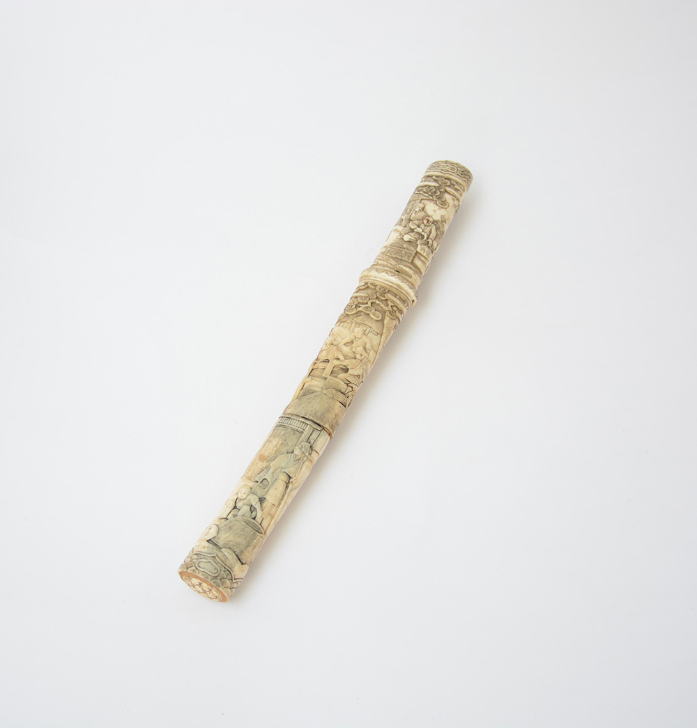 Pugnale "tanto" con montatura e custodia in avorio scolpitocon scene di vita...