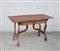 Antico tavolo "fratino" ad un cassetto sottopiano con gambe a lira riunite da...
