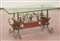Tavolino da salotto con piano in cristallo, base ricavata da un carretto agricolo in legno e ferro battuto (cm 100x53x45) (difetti)