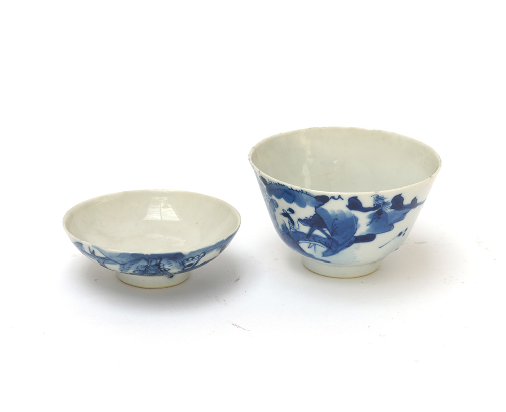 Coppetta con coperchio in porcellana bianca e blu (difetti) Cina, sec. XX (d....