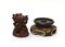 Lotto composto da due basi orientali in legno scolpito con dorature (difetti)...