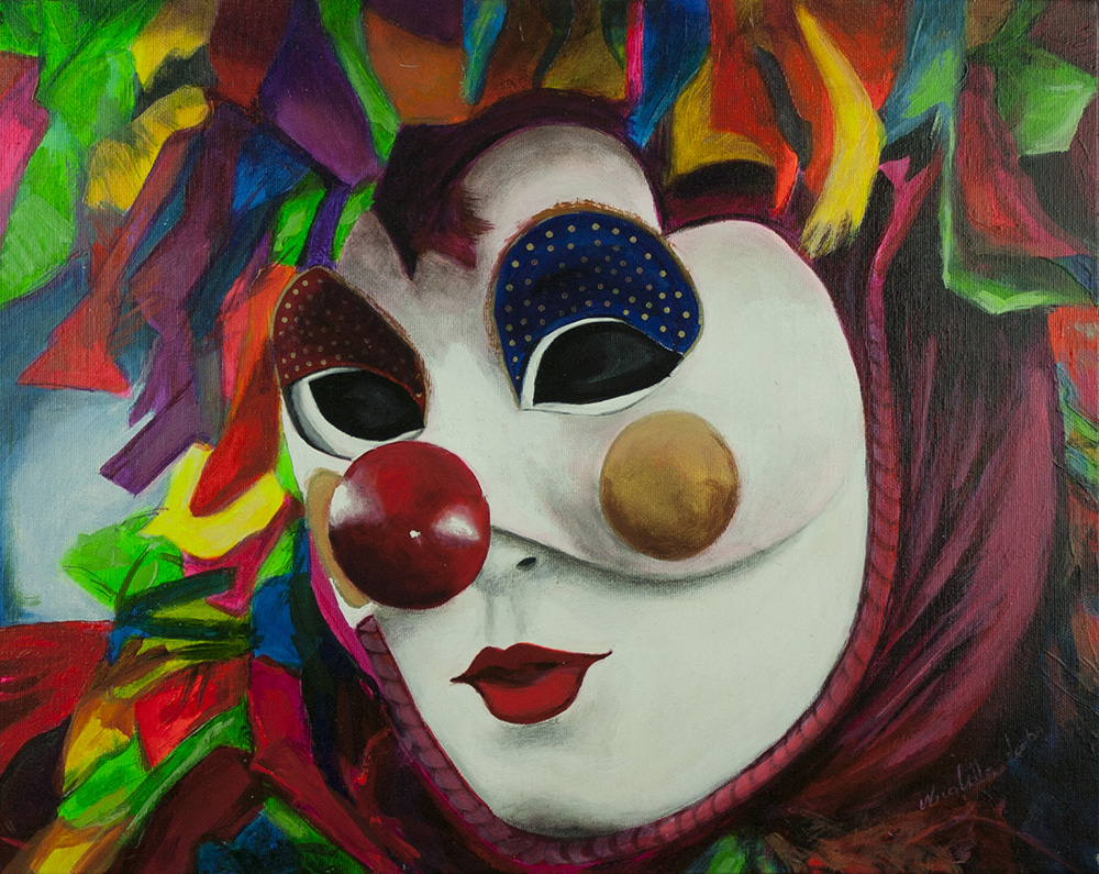 NICOLETTA LEMBO Castagneto Carducci, 1965 "Pagliaccio " Tecnica mista olio e acrilico 40x50 cm firmato al fronte e al retro Autentica dell' Artista