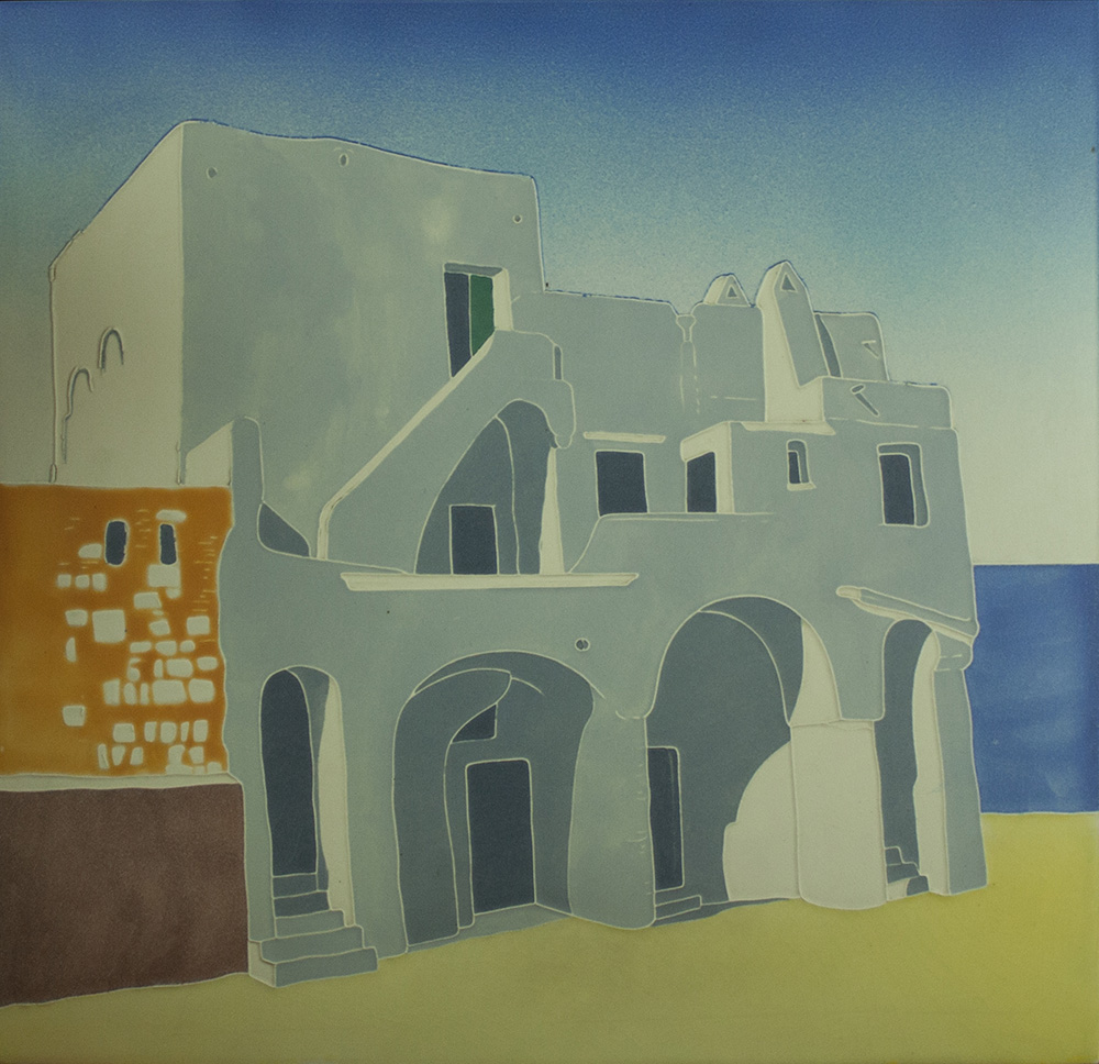 TASTARDI Salerno, 1967 " Abitazione del golfo " acquerello su ceramica 56x58...