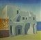 TASTARDI Salerno, 1967 " Abitazione del golfo " acquerello su ceramica 56x58 cm Firmato sul profilo in legno che lo circonda e al retro Autentica del Maestro