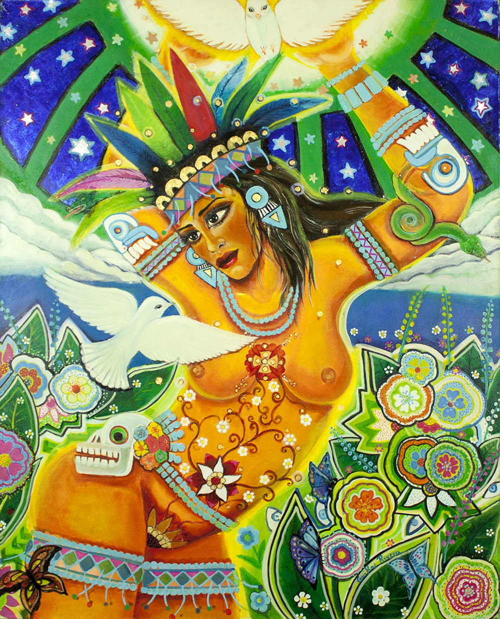GUIKNI ( Guillermina Rivera ) Città del Messico, 1967 " Pistis " anno 2017 olio su tela 100x80 cm firmato al fronte; al retro etichetta dell ' Artista