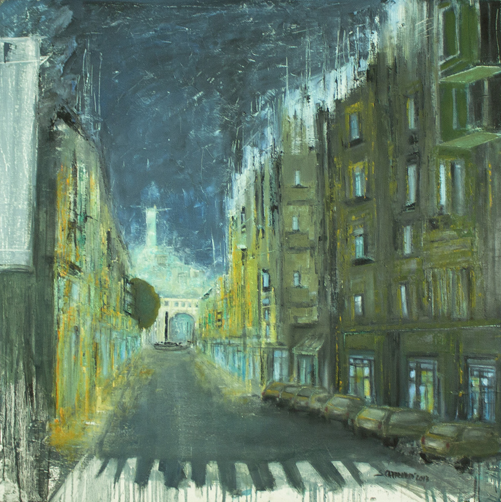 STEFANIA CAPPELLETTI Spoleto, 1964 Via Flaminia vecchia " La stele " anno 2017 olio su tavola 100x100 cm firmato al fronte e al retro