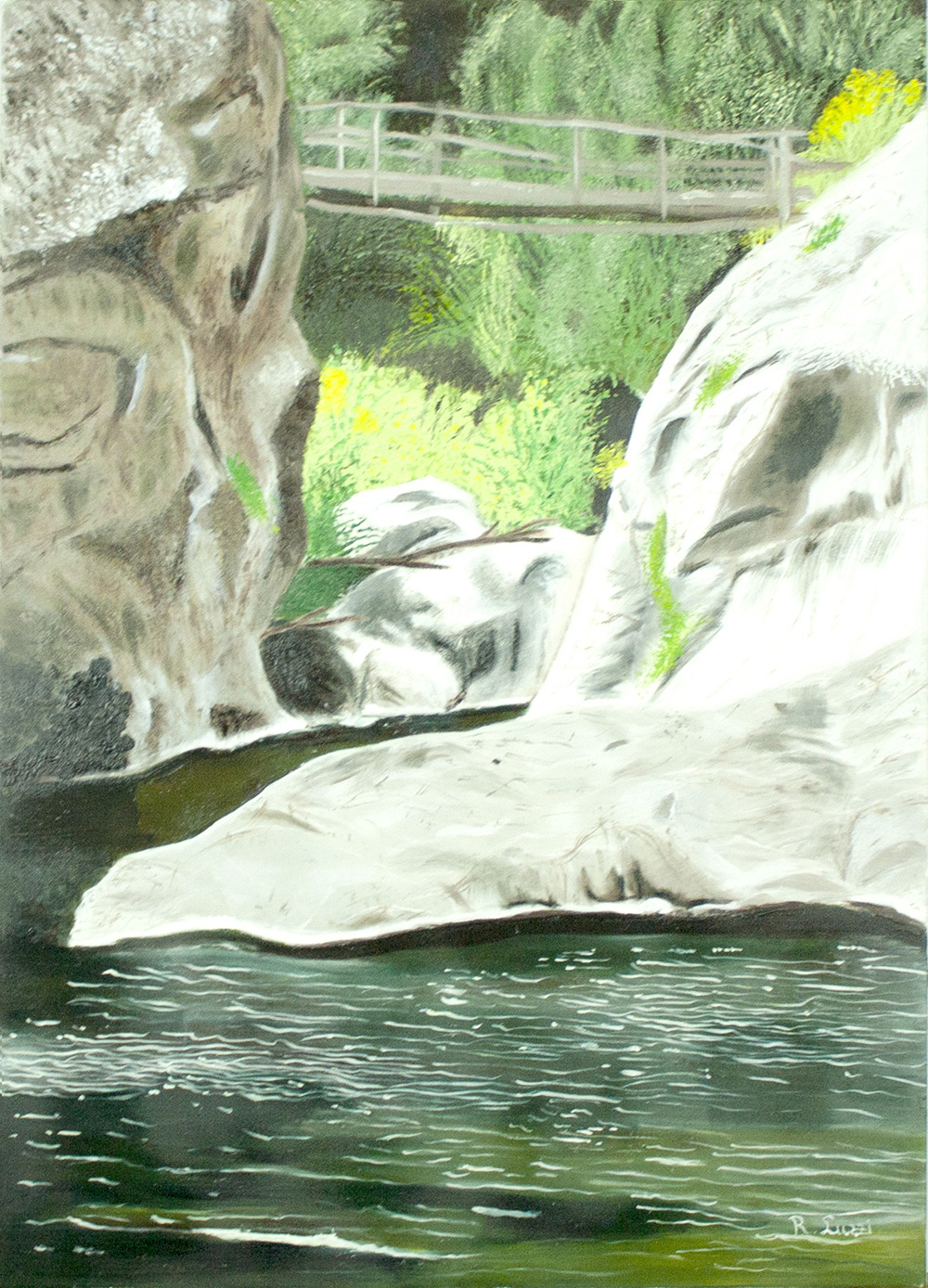 ROSETTA LUZZI Rossano, 1978 " Ponte Sabatino-Longobucco " anno 2017 olio su tela 70x50 cm firmato al fronte; al retro titolo, firma e anno