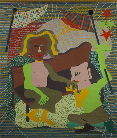 ELVIO MIRESSI Foggia, 1960 " Essenza di un bacio " anno 1999 olio, acrilico e stoffe su tela 100x87 firmato, titolaro e datato al retro