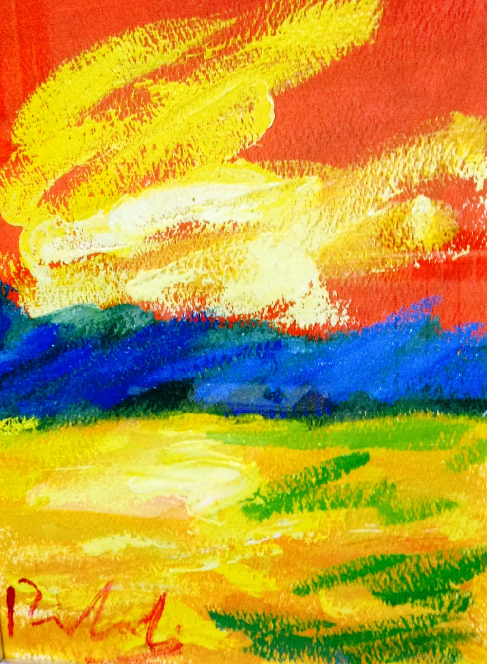 FRANCESCO BITONTI San Giovanni in Fiore " Paesaggio introspettivo " olio su carta 50x30 cm firmato al fronte Certificato del Maestro