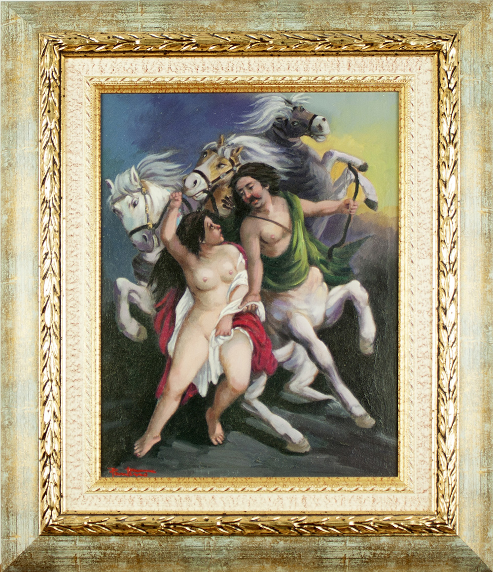 PIETRO PANTINO Roma 1941 "Chirone e l' amazzone " olio su tavola 40 x 30 cm...
