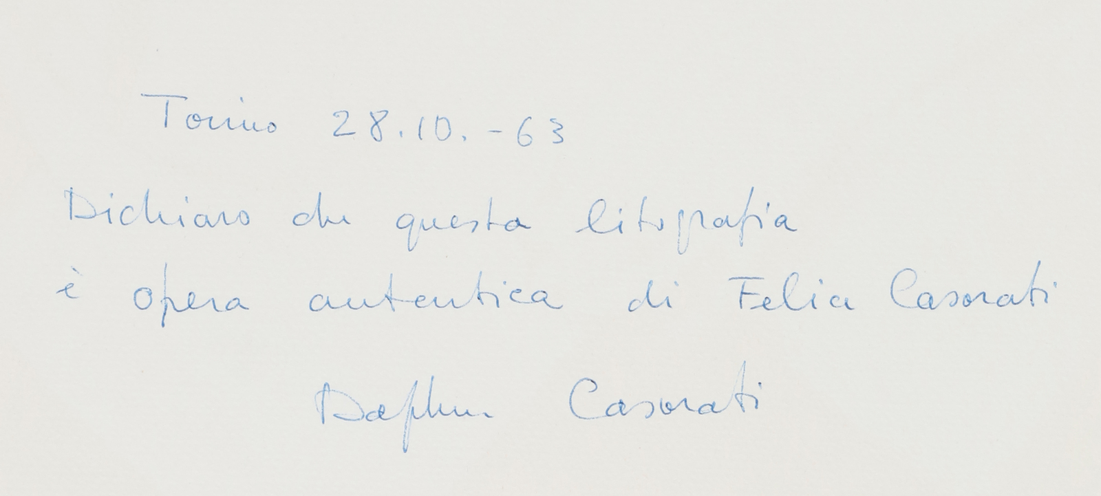 CASORATI FELICE (1883 - 1963) Untitled. Lithograph. Cm 46,00 x 34,00. At the back declaration of authenticity.