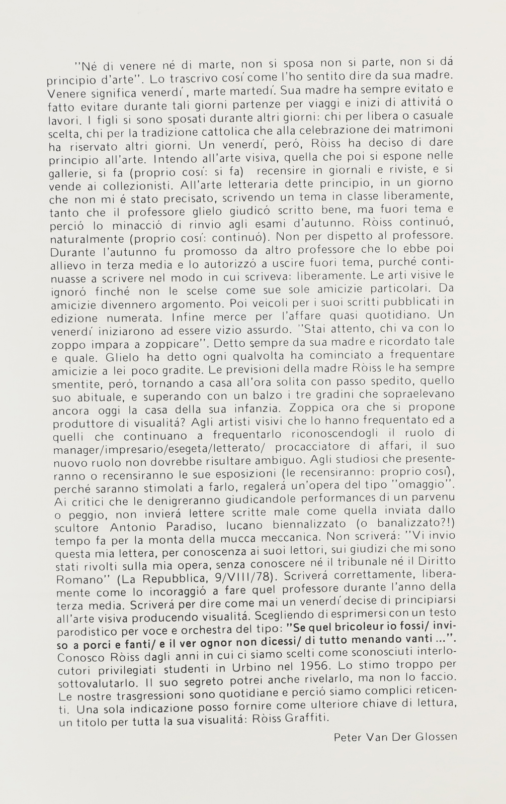 VAN DER GLOSSEN PETER Roiss Graffitè. 1982. Serigrafia (cartella completa)....