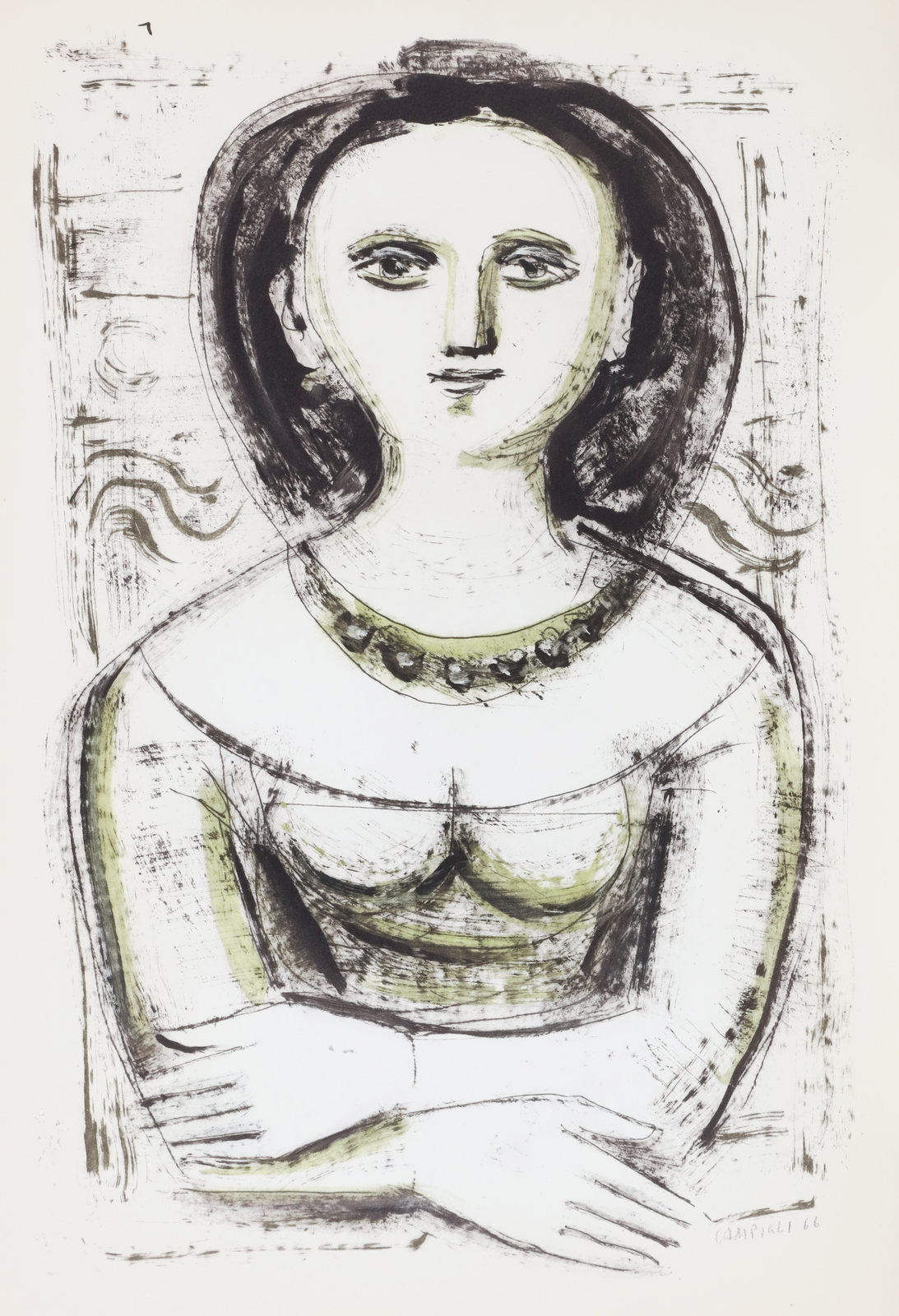 CAMPIGLI MASSIMO (1895 - 1971) Senza titolo. 1966. Litografia. Cm 35,00 x 52,00. Firma e anno a matita in basso a destra.