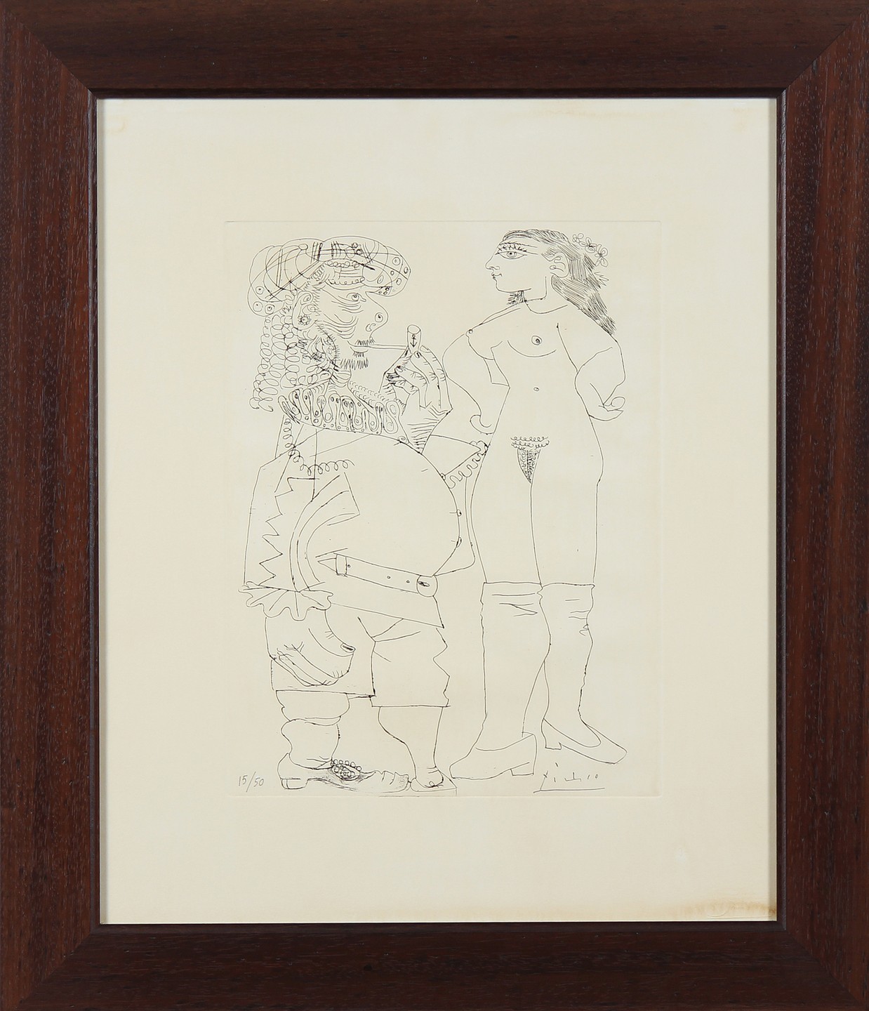 PICASSO PABLO (1881 - 1973) D'APRES. Senza titolo. Acquaforte. Cm 50,00 x 60,00. Misure lastra: 39,5x30 cm.15/50 tiratura in basso a matita. Timbro a secco Foundation Maegt, Saint Paul De Vence, France. Cornice presente