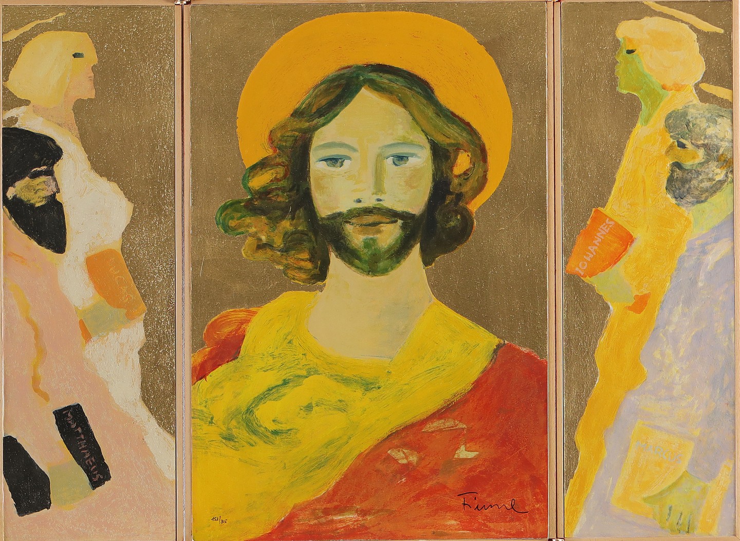 FIUME SALVATORE (1915 - 1997) The smiling Christ. Oleograph. Cm 40,00 x 60,00. 152/315.Signature lower right.