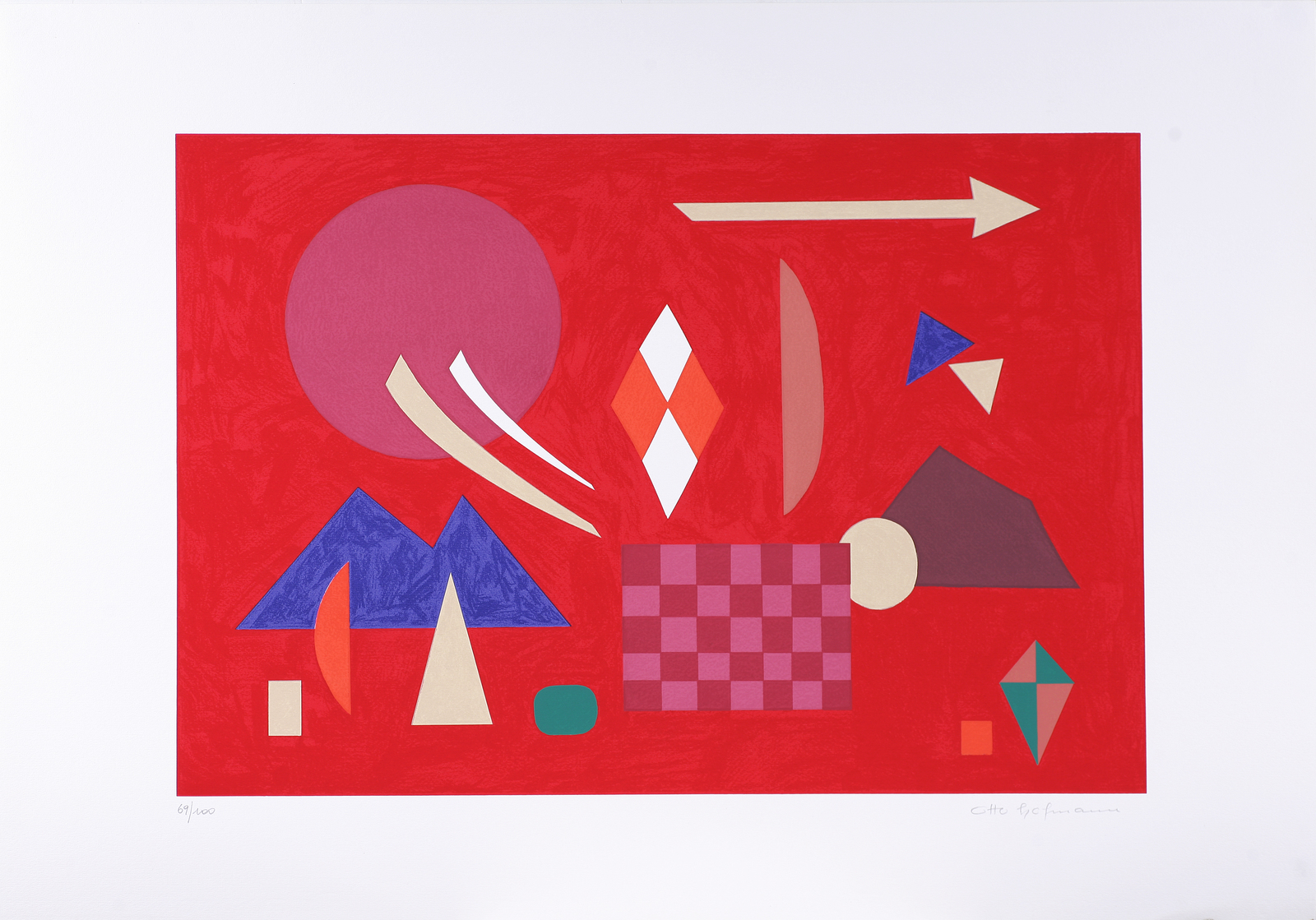 HOFFMANN OTTO (1907 - 1996) Otto Hoffmann (folder). 1989. Silkscreen. Cm 100,00 x 70,00. Complete folder containing No. 3 sheets. Signature and edition lower in pencil. Edition: 100 + XXX. Valente Arte Contemporanea editions, Elisabetta Longari texts . Oncolour stamp. Original pack. Exemplary: 69